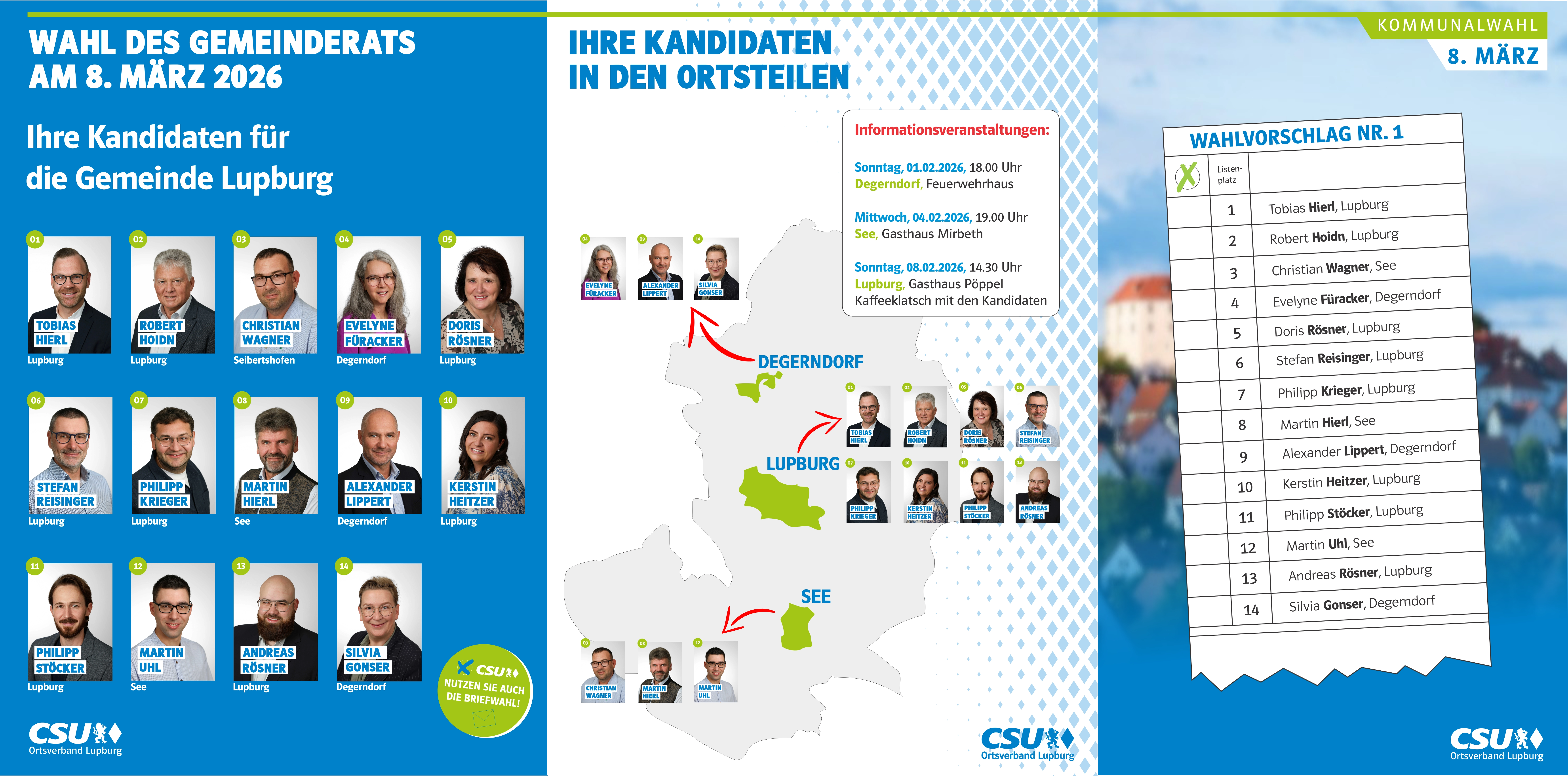 Ich will mein Netzwerk, meine Zuverlässigkeit, meinen Fleiß, meinen Ehrgeiz und meine Neugier in den nächsten sechs Jahren und darüber hinaus einbringen und gemeinsam mit dem Gemeinderat und den Bürgern, Lupburg weiter voranbringen.